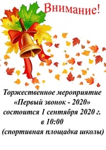 Торжественное мероприятие "Первый звонок - 2020" состоится 1 сентября 2020 г. в 10:00