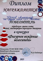 Поздравляем команду отряда ЮИД «Светофор» победителя слёта юных инспекторов дорожного движения в конкурсе «Плакат социальной рекламы по безопасности дорожного движения» и Юркова Александра, который стал лучшим в конкурсе «Фигурное вождение велосипеда».
